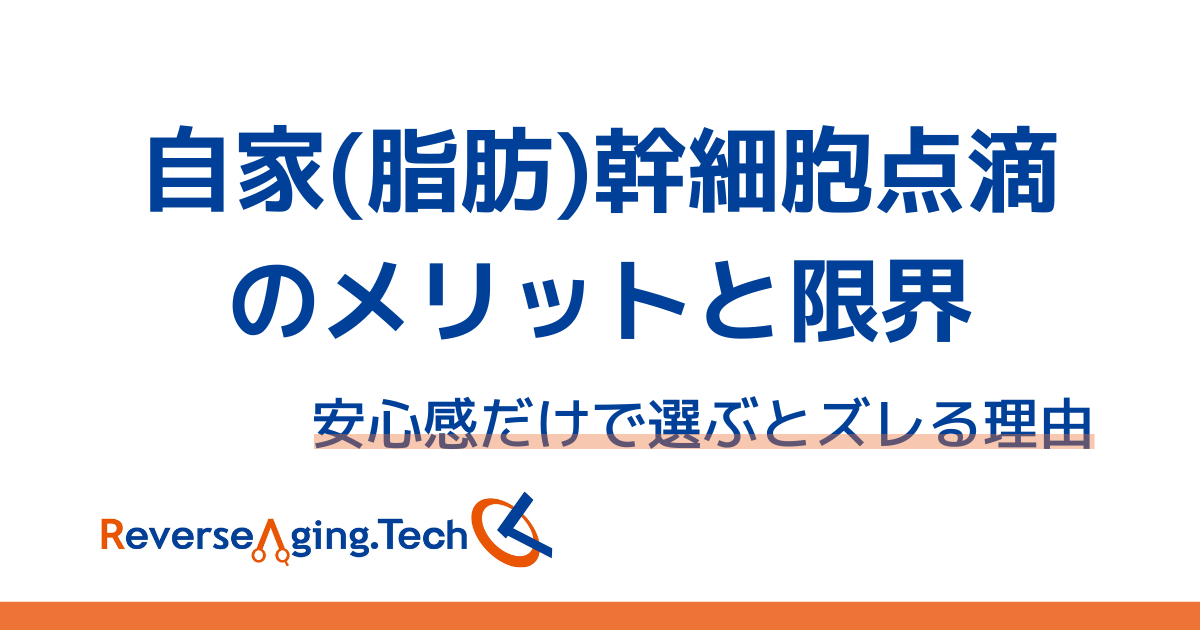 ここまででお伝えしたとおり、自家(脂肪)幹細胞点滴は「自分の細胞を使う安心感」がある一方で、年齢や体内環境の影響を受けやすく、個体差が結果に反映されやすい可能性があります。